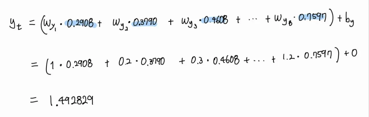 모델의 출력값 yt가 어떻게 구해지는지 알아봅시다.