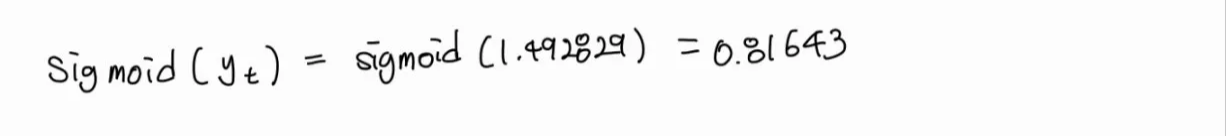 실제 모델의 출력값(yt) 1.492829를 시그모이드에 넣으면 0.81643이 나옵니다.