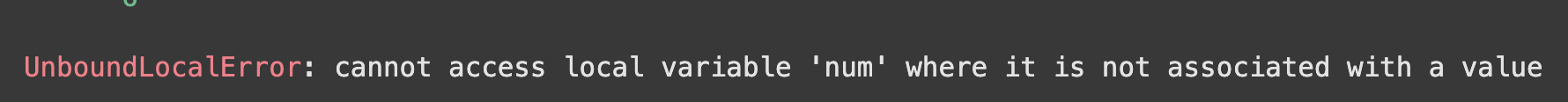 변수를 찾을 수 없다라는 말을 좀 더 풀어보면 “램에 num이란 변수명을 가진 데이터는 없습니다” 라고 알려주는 오류입니다.